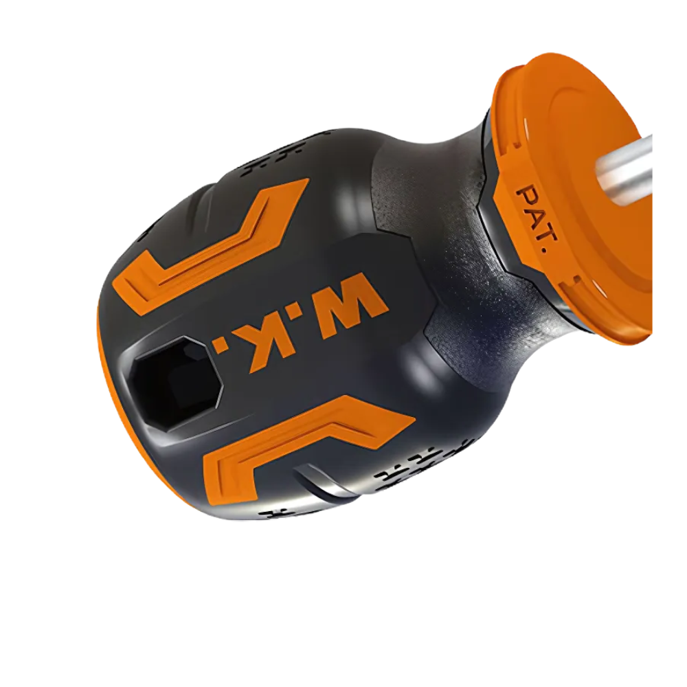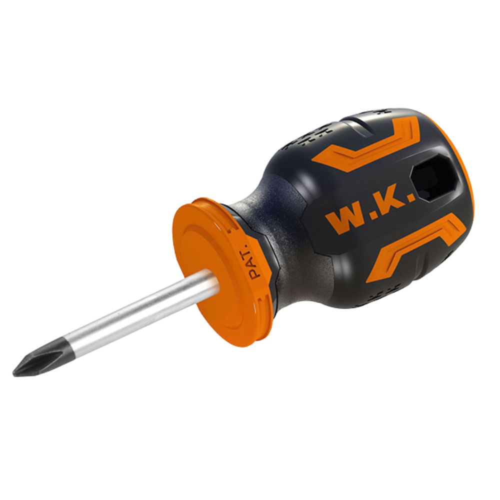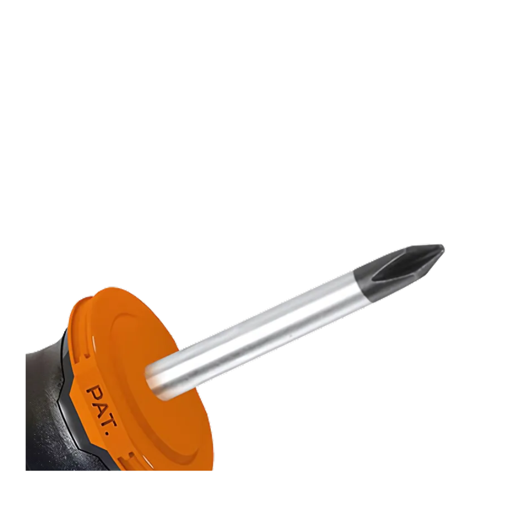 El destornillador Phillips Wokin facilita el ensamblaje en lugares confinados gracias a su diseño compacto. Su punta magnética asegura un manejo preciso en aplicaciones delicadas. Se presenta en una percha plástica, con 12 unidades organizadas en una caja a todo color para un almacenamiento eficiente y ordenado.